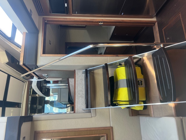 In 2024, the vessel received a comprehensive electronics refit, including a Garmin electronics package, along with the installation of a Yacht Controller system, enhancing maneuverability and ease of docking.